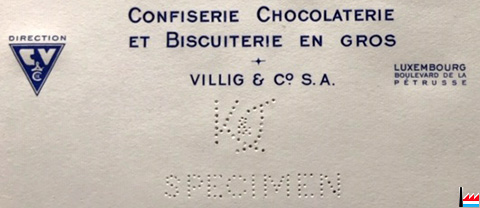 | <=1936 | Villig Constant & Cie, Luxembourg 19 rue de Hollerich confiserie, chocolaterie et biscuiterie en gros |
