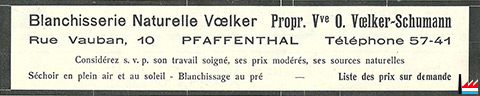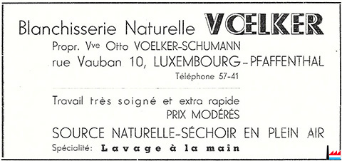 1930 - W äscherei Völker. - dans: Fanfare de Pfaffenthal 1905-1930 - Programme officiel - Imprimerie Centrale Gustave Souppert, Luxembourg. - Collection famille Aschman-Bodson