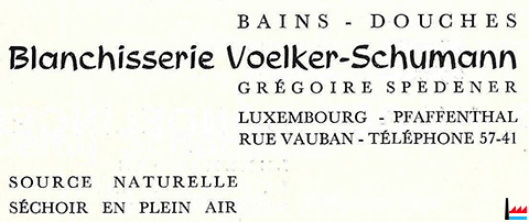 | <=1949/50 | Blanchisserie Voelker - Schumann Propriétaire: Grégoire Spedener Bains - Douches - Sources naturelles - Séchoirs en plein air |