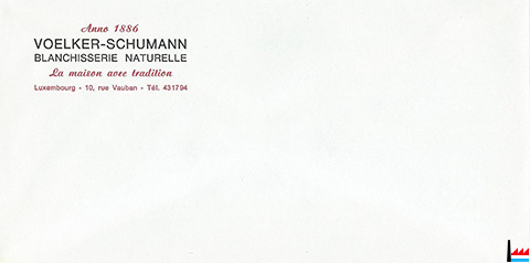 Anno 1886 - VOELKER-SCHUMANN - BLANCHISSERIE NATURELLE - La maison avec tradition - Luxembourg - 10, rue Vauban - Tél. 431794 - Enveloppe à entête - 11 x 22 cm (Collection Aschman-Bodson)