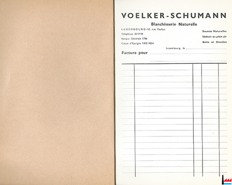 VOELKER-SCHUMANN - Blanchisserie Naturelle - Sources Naturelles - Séchoir en plein air - Bains et Douches - Luxembourg, 10, rue Vauban. - Carnet de 50 factures avec duplicata 21 x 15 cm (Collection Aschman-Bodson)