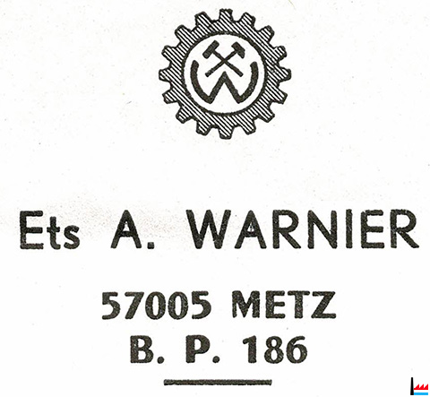 | <=1974 | ![]() Etablissements A. Warnier F- 57005 Metz B.P. 186 |