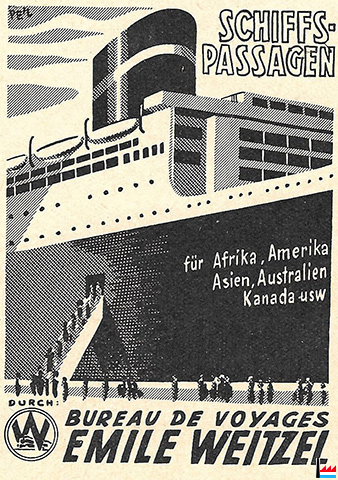 Bureau de Voyages et d’Emigration Emile WEITZEL, Successeur Luxembourg, Boulevard Royal 59 Téléphone Nos 20-90 et 20-93