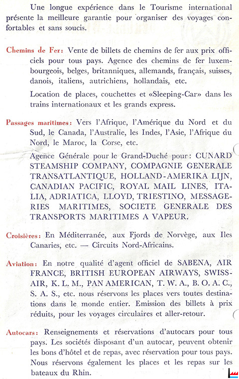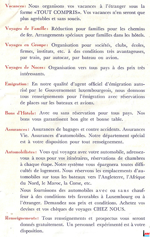| 1953 | ![]() Bureau de voyages Emile Weitzel, Luxembourg (Dans: Luxemburger Marienkalender 1953; Scan: Philippe Aschman) |