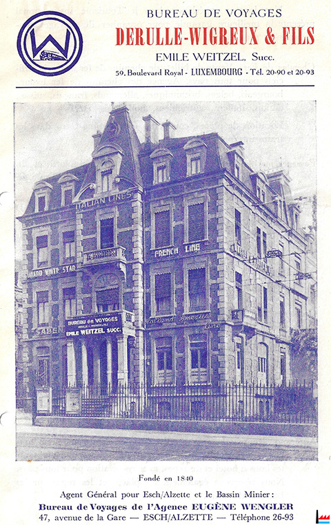 | 1.4.1927 | Reprise du Bureau de voyages Derulle-Wigreux et fils par Joseph Weitzel - Kammes, fondé de pouvoir à la Société Alsacienne de Banque, Luxembourg |