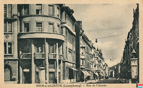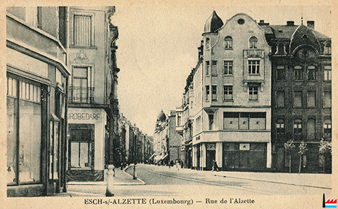 Esch/Alzette: rue de l'Alzette vue de la Place Norbert Metz (Carte postale: Edition de l'Agence Eug. Wengler, Esch/Alzette; Collection: industrie.lu)