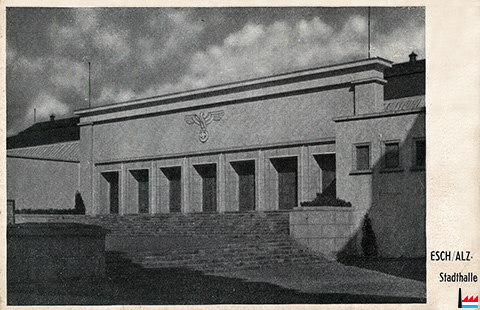 Stadthalle, Esch/Alz. - 194x (Carte postale: A.-E.-W. Ag. E. Wengler, Esch/Alz. (Luxbg.); Collection: industrie.lu)