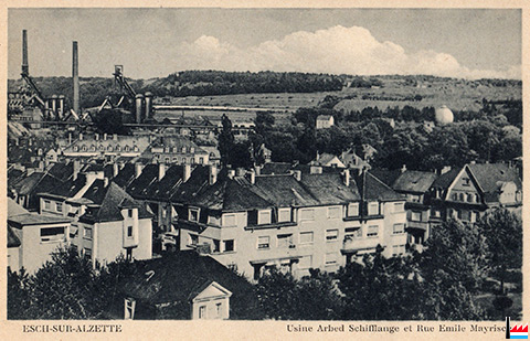 Esch/Alzette - Usine ARBED-Schifflange et Rue Emile Mayrisch (Carte postale: Edition Agence Eugène Wengler;