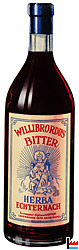 Produit : Un amer dénommé « Willibrordus-Bitter ». La marque représente une étiquette sur papier jaune-crème. Sur elle est figuré Saint Willibrord, en ornat, assis sur un trône, placé au-dessus de nuages, la crosse en main gauche, à son côté un enfant tenant la bible ; le tout entouré d'un rayonnement et en couleur brun foncé. Au-dessus du Saint les mots « Willibrordus-Bitter » en couleur rouge, au-dessous de la figure les mots « fabriqué par » en couleur bleue, la «Herba» en couleur jaune foncé « Echternach » en couleur rouge. Un encadrement avec ornements en couleur bleue. |