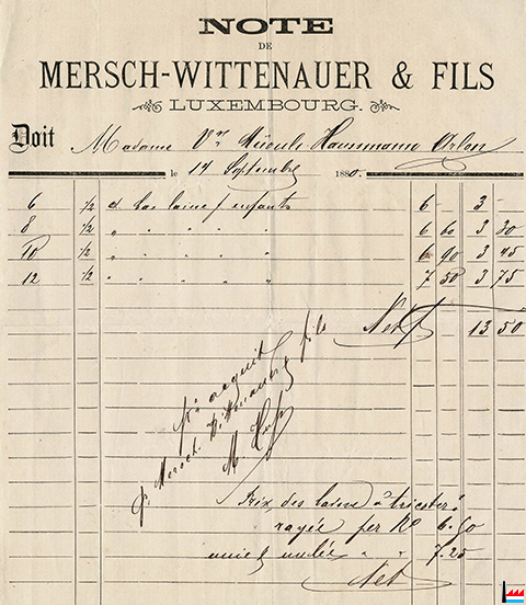 | <=1880 | ![]() Mersch-Wittenauer & fils, Luxembourg (facture du 14.9.1880; collection industrie.lu) bas en laine pour enfants |