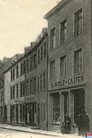 | 12.1940 | An den Geschäftshäusern Wolf-Cahen und Victor Mayer, letzteres Eigentum des Gastwirtes Fritz Gelhausen-Fischer wurden unter Leitung des Architekten Jentgen aus Luxemburg durch die Baufirma Adam Guill-Seywert bedeutende Umbauarbeiten im Innern sowie an den Fassaden ausgeführt. (LW: 10.12.1940) |