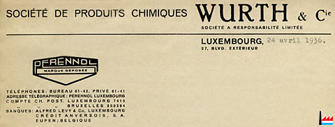 | 1910 | Albert-Louis Würth, Luxembourg et Hollerich. Installations et articles de ménage, combustibles et matières d'éclairage (carbure, esprit de vin, benzine etc.) Exploitant : Albert Würth, dit Albert-Louis Würth, Hollerich, rue Wedel, 25 (Registre aux firmes N° 38 - Du 11 février 1910) |
