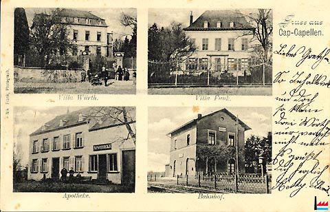 Gruss aus Cap - Capellen: Villa Würth, Villa Funck, Apotheke, Bahnhof um 1900 (Carte postale: Nik Frank, Photograph; collection: