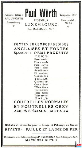 | <=1927, 1932 | Paul Wurth, ingénieur, Luxembourg, 21 rue Notre-Dame |
