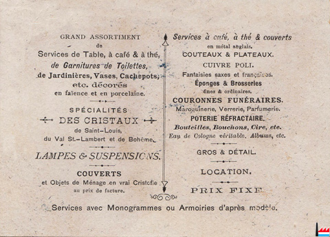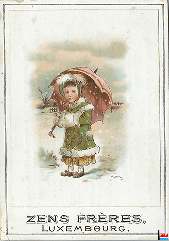 Zens Frères, Luxembourg - Images publicitaires en chromolithographie (recto: 11,7 x 8,3 cm - verso: 8,3 x 11,7 cm) - (Collection Charles-Louis Aschman)