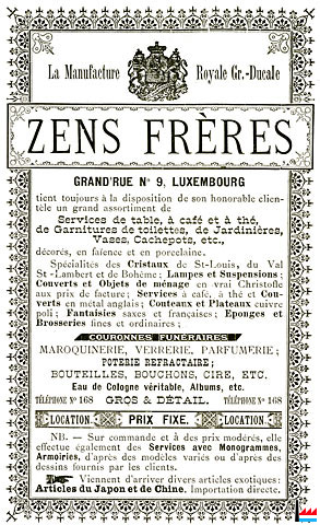 | 1885/86 | Umzug der Gebrüder Zens von Echternach nach Luxemburg, Großstrasse | ||