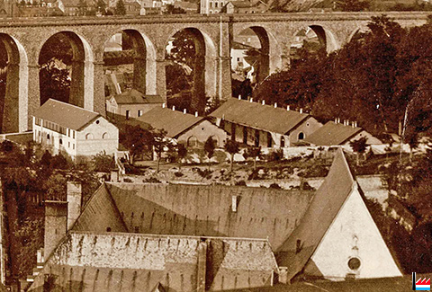 Abattoir - Schlachthof Pfaffenthal - Schluechthaus Paffendall, rue du Fort Olizy - 9.6.1892 - Viaduc de Pfaffenthal de la Ligne du Nord (Collection: industrie.lu)