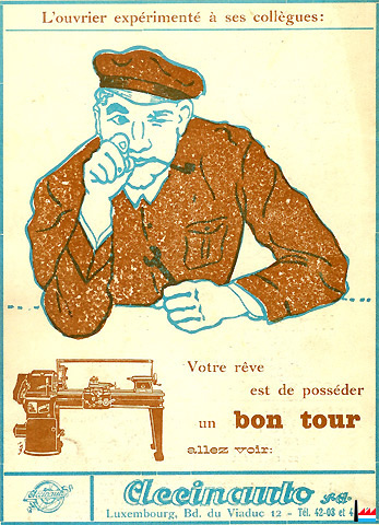 1948 Déménagement au nouveau bâtiment de Michel Wolff donnant directement sur la place de la gare (site de l'ancienne usine BERL). Ce bâtiment dont l'architecture intéressante comporte dans la façade des sculptures d'Auguste TREMONT. Le premier relief représente un ouvrier de haut-fourneau, des éléments de l’aciérie et du laminoir, symboles du pilier de l’économie luxembourgeoise de l’époque: la sidérurgie. Le second est consacré au tourisme, un secteur d’activité alors en plein développement, et représente d’une part une élégante dame avec son automobile, accompagnée de son chien et, d’autre part, les hauts-lieux touristiques que sont Vianden, Clervaux, Echternach ainsi que le château de Brandenbourg.
