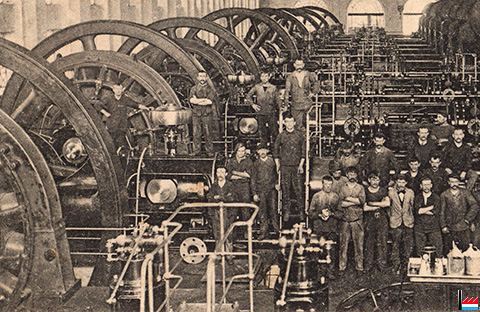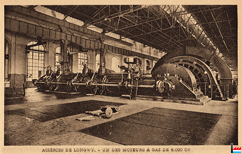 Aciéries de Longwy - Un des moteurs à gaz de 6.000 CV (Carte