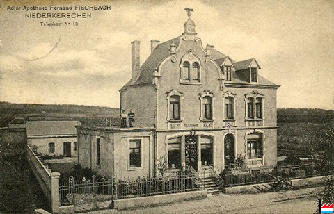 Adler-Apotheke Fischbach, Niederkerschen - Ancienne Pharmacie de l'Aigle à Bascharage, 78 avenue de Luxembourg (Photo: 18.7.2021 jmo - Carte postale: 1912 - Dr. Henri Kugener)