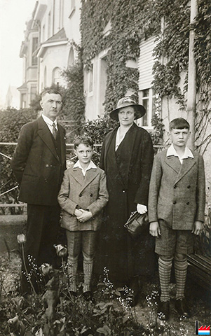 1931 - Devant le n° 82 de l’avenue Pasteur, Luxembourg-Limpertsberg: Camille Aschman Jr. (* 22.7.1890), Alex Aschman (* 17.7.1924), Sisy Aschman-Huss (* 1.10.1888) et Pol Aschman (8.2.1921) (Photo Camille Aschman Jr. - Collection famille Aschman-Bodson)