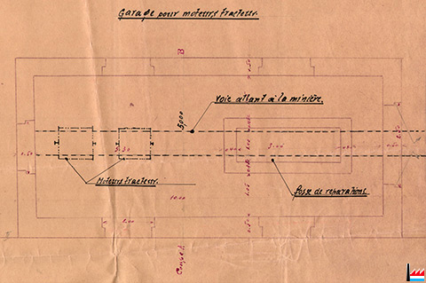 moteurs tracteur - voie allant à la minière - fosse de réparations - In oberst Stackels de la S.A. d'Angleur-Athus Division Minières - 1929 (ANLux J90 / 5226)