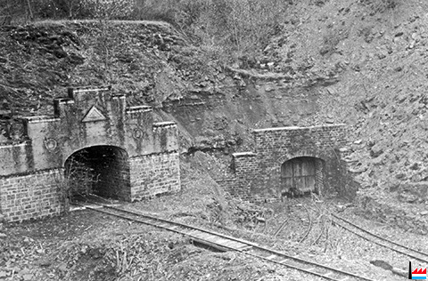 Links das Stollenloch zum roten Lager der Grube Angleur-Athus - Konzession Gaertchen - Fussbusch - rechts das gemeinsame Stollenloch zum grauen Lager der Gruben Providence und Gaertchen - Fussbusch (Collection: Charles Storoni)