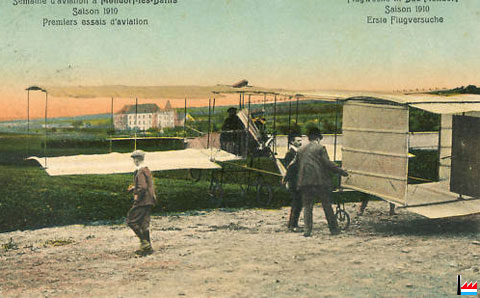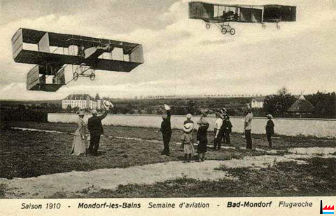 | 15.4.1910 | Flugversuch von Jacques Wiesenbach mit der "Voisin" - Flugmaschine in Mondorf: Distanz 100 m in einer Höhe von 1 Meter | |||||||