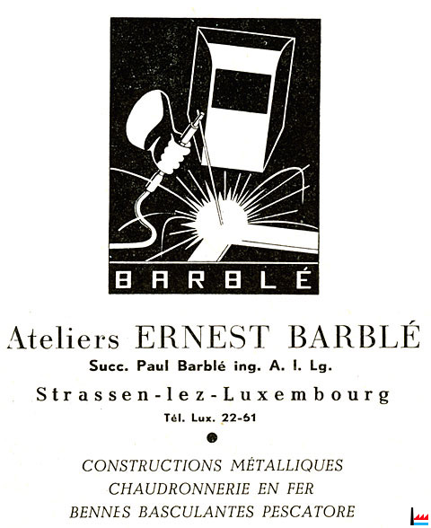 Ateliers Ernest Barblé Succ. Paul Barblé - Ingénieur A.I. Lg. Strassen-lez-Luxembourg Fondés en 1901 |