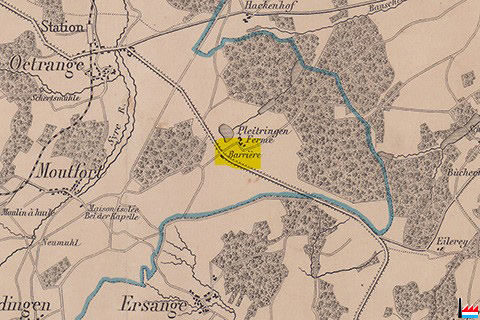 ![]() Barrière Beidweiler (Carte Jean-Baptiste Liesch - 1862) |