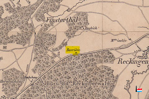 ![]() Doncols - Barrière - Grümelscheid (Carte Jean-Baptiste Liesch - 1862) |