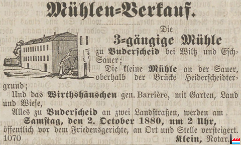 | 1861 | Letzten Freitag fand die Versteigerung der Barrière des Districts Diekirch im Stadthause daselbst für 1862 statt, u.a.. (Wächter an der Sauer: 4.12.1861) |