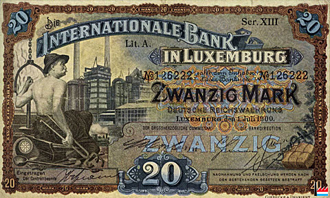 Internationale Bank in Luxemburg 20 Mark Deutsche Reichswährung Luxemburg, den 1.7.1900 |