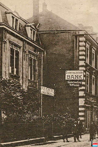 Malgré la guerre, les comptes courants créditeurs de la BIL ne cessent d'augmenter. En 1918, alors que le mark s'effondre, la BIL doit prendre en charge l'amortissement de 43 millions de francs. Après la guerre, les intérêts allemands sont remplacés par des capitaux français et belges. En 1920, la Banque de Bruxelles et la Banque de l'Union Parisienne prennent une participation dans la BIL, le tour de la Dresdner Bank viendra en 1926. |