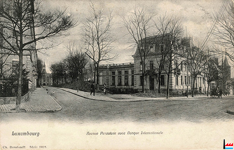 ![]() Luxembourg - Avenue Pescatore avec Banque Internationale (Carte postale: Ch. Bernhoeft, Série 1905; Collection: industrie.lu) |