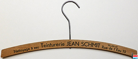 Teinturerie JEAN SCHMIT - Nettoyage à sec - Rue de l'Eau - Tél. 231.42 - Cintre publicitaire en bois (Collection Philippe Aschman)