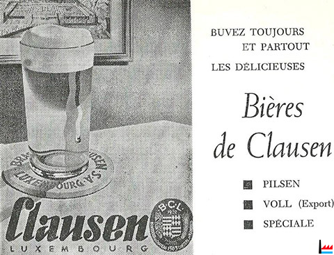 | 1948, 1949 | Clausener Fläschebéier kritt een an déne méschten Epicierien, a sämtlëche Filialen vun der Cogénal, a ville Caféen Dépositaires: