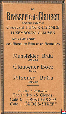 | 25.8.1920 | Constitution: Brasserie de Clausen S.A. Capital: 700.000 LUF |