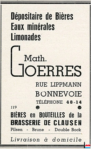 Math. Goerres, rue Lippmann, Bonnevoie - Pub de 1938 (Collection: industrie.lu)