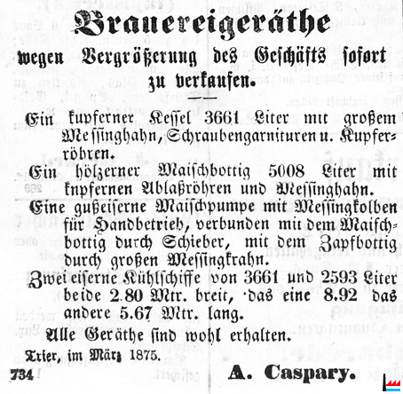 Brauerei A. Caspary, Trier (LW: 13.3.1875)
