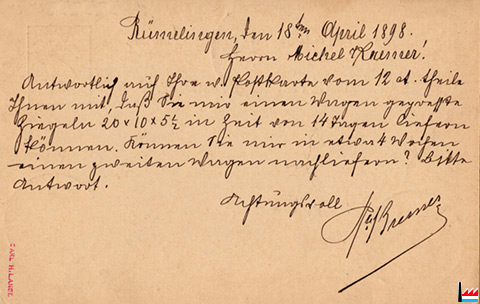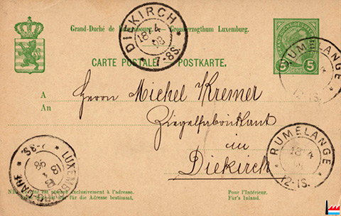 Postkarte an Michel Kremer, Ziegelfabrikant in Diekirch - 18.4.1898