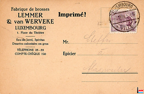Werveke succ. Jos. Lemmer 5 rue de Hollerich Luxembourg Tél. 2555 |