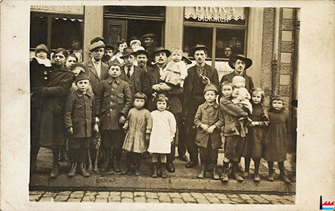Café Bloes-Schiltz, Bascharage, Grand'Rue (= 153 avenue de Luxembourg) - <=1923 (Carte postale: Maison de gros P. Houstraas, Luxembourg et Metz; Collection: industrie.lu)