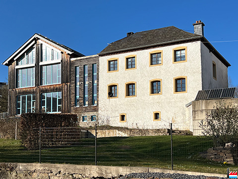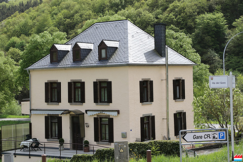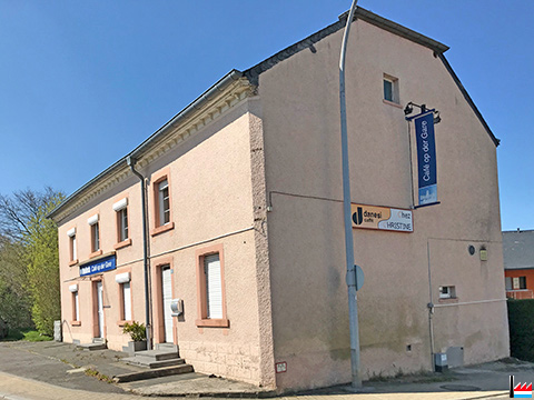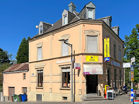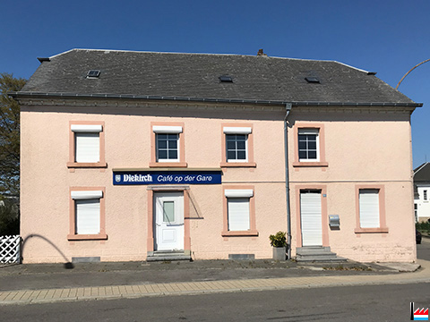 Als Café de la Station und zugleich als Stationsgebäude Altlinster vorgesehen (Photos: 5.5.2022 jmo) Eck Schleifmillen / CR130): www.google.com/maps/@49.7220883,6.2179655,3a,63.2y,75.64h,90.74t/data=!3m6!1e1!3m4!1sNGjBPd7cth8zG8Fl3gJ3kQ!2e0!7i13312!8i6656