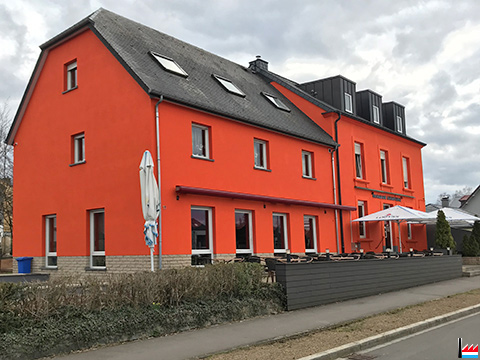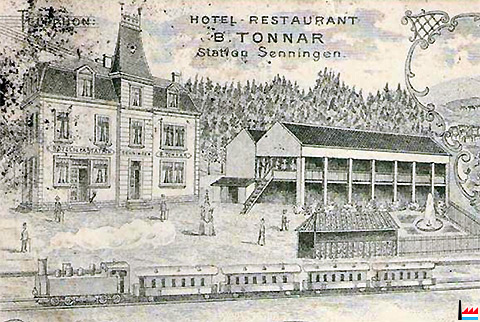 Das neue Hotel in Altlinster (32 Fenster, 2 Stockwerke, wenigstens 20 Zimmer) soll als Café de la Station und zugleich als Stationsgebäude der neuen Bahn Junglinster - Fels dienen. (LBZ: 15.10.1910)