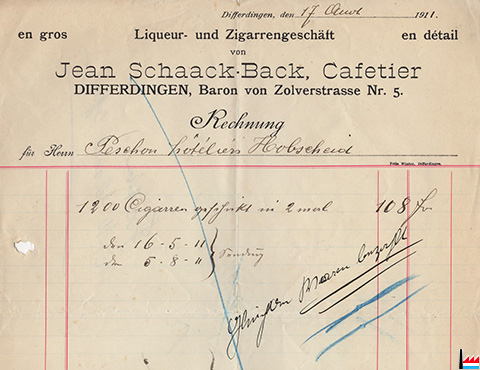 ? - 1935: Bahnhofswirtschaft, Wasserbillig, Huss-Schmit (1935: Huss-Schmit, Gerant des Luxemburger Weinpavillons auf der Weltausstellung in Brüssel)