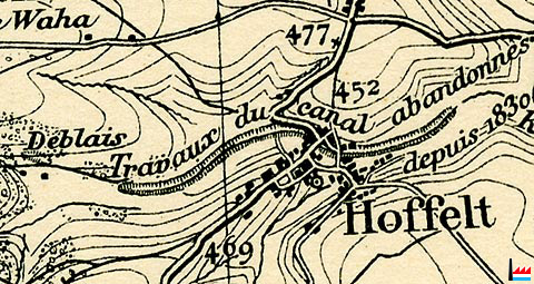 | 1835 | L'apparition du chemin de fer en Belgique en 1834, ainsi la frontière qui coupe le souterrain en deux à partir de 1839, feront oublier toute reprise des travaux pour le Canal de Meuse - Moselle. |