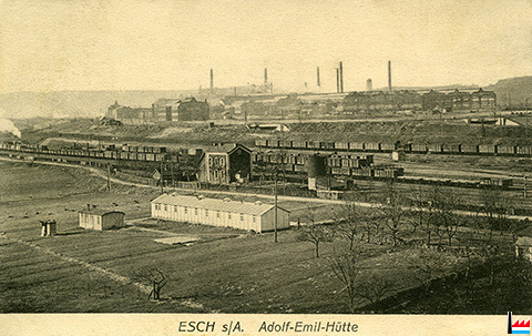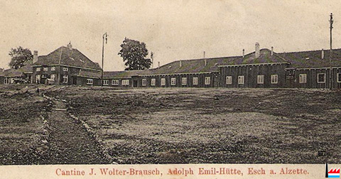 Adolf-Emil-Hütte: Kantine ?, in der Belvalerstraße, Esch/Alzette <=1913 (Carte postale: P C Schoren Luxembourg-Gare; collection: