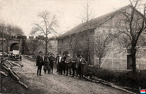 Op der Foto vun 1918 ganz riets vun der Grupp Leit stinn 3 Schiltzën Bridder: Ganz riets beim Hond de Sepp, deen niewent him ass den Jampier, an derniewent den Hary. Sie haaten zu Syren eng eegen Cantine, an den Hary waar de Kach an der Cantine. Hien haat den Hôtel du Mullerthal zu Consdorf. Déi aaner mussen Aarbechter sinn. Deen niewent dem Hary steet, schëngt aawer éischter een vun der Eisenbunn ze sinn, deen d'Aarbechten kontrolléiert, well hien ass aanescht ugedon.