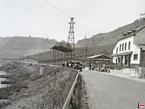 | 12.1909 | Der Arbeiter J.P. Heyrand erlitt auf dem Steinbruch der Firma Itschert in der Kelsbach, beim Laden eines Waggonets eine Schulterverrenkung, wodurch er für längere Zeit arbeitsunfähig sein wird. - Zur glücklichen Vollendung der schweren und schwierigen Arbeiten beim Aufziehen der Drahtseile über die Mosel wurde am Samstag abend ein mit Bändern und Blumen geschmückter Tannenbaum in der Mitte der Mosel auf das Gerüst aufgepflanzt. (LW: 13.12.1909) | ||